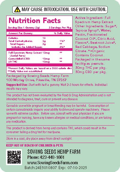 Our new Delta 9 Gummies are a delicious way to enjoy your THC! Made with full spectrum hemp extract, each watermelon gummy is a blend of 10mg D9 THC and 10mg CBD!